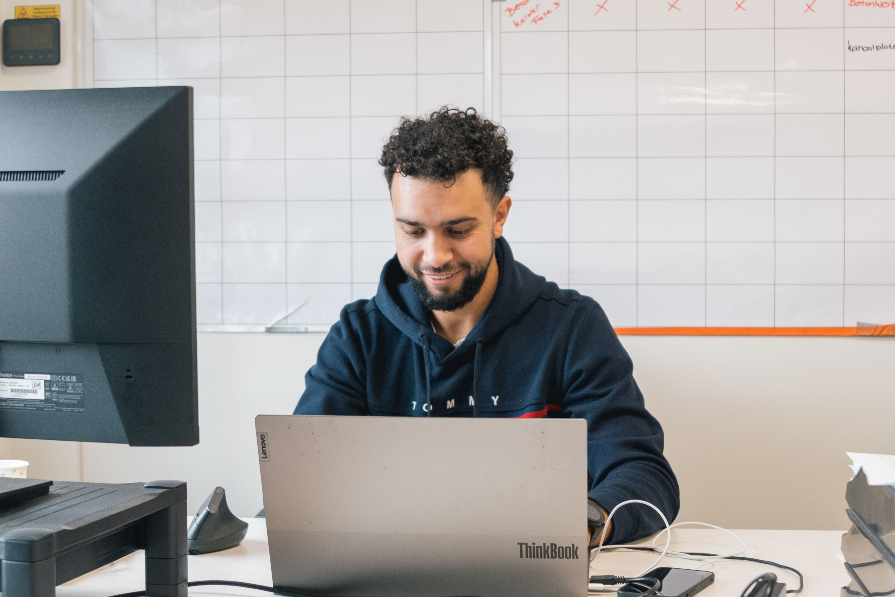 Een gemiddelde werkdag begint voor Mohamed Rida vroeg. De ploeg start om 06:30. Als Werkvoorbereider Uitvoering zit Mohamed Rida letterlijk boven op het project. Hij is dagelijks op locatie te vinden om snel te kunnen schakelen met de uitvoerder en onderaannemers. Zijn dagen bestaan uit het voorbereiden van de projectplannen, het uitwerken van de technische tekeningen en het afstemmen van de juiste veiligheidsmaatregelen. “Maandag kunnen plannen nog A zijn en woensdag plots B", vertelt hij met een glimlach. “Flexibel blijven, vooruitzien en doorpakken, dat is de charme van bouwen.”